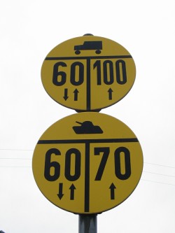 Señal curiosa 21 de noviembre de 2006 Estas señales se ven a menudo en carreteras secundarias de Alemania. Lo que no se ve son los tanques. ¿Dónde andarán? Y si se saltan la limitación de velocidad, ¿quién los detiene para multarlos?